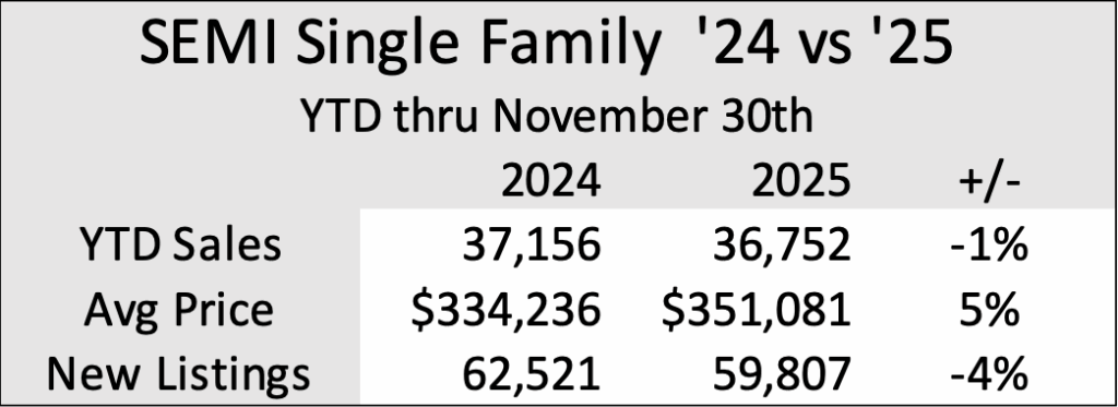 Compared to last December, the number of homes for sale in Southeast Michigan is up about 9%, while new listings this year are down roughly 4% and home sales are down just 1%. The explanation is simpler than it sounds. Inventory doesn’t rise only when more homes are listed. It also rises when homes take longer to sell.