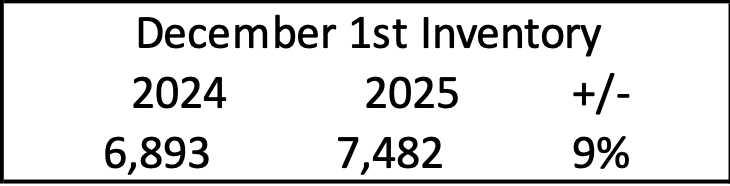 In today’s market, buyers are taking more time to make decisions, and homes that are in average or below-average condition don’t sell quickly are staying on the market longer instead of selling right away or being taken off the market. The average market time for a home that accepted offers in November was 34 days, while average days on market for an active listing that has not yet accepted an offer is 96 days. When listings remain available for longer periods, they begin to add up — even if fewer new homes are being listed.