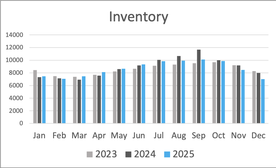 The most notable change in 2025 was not pricing, but market behavior. New listings declined modestly for the year, buyer showings trended lower compared to the peak years of 2022 and 2023, and inventory growth was driven largely by listings staying on the market longer rather than a surge of fresh supply.